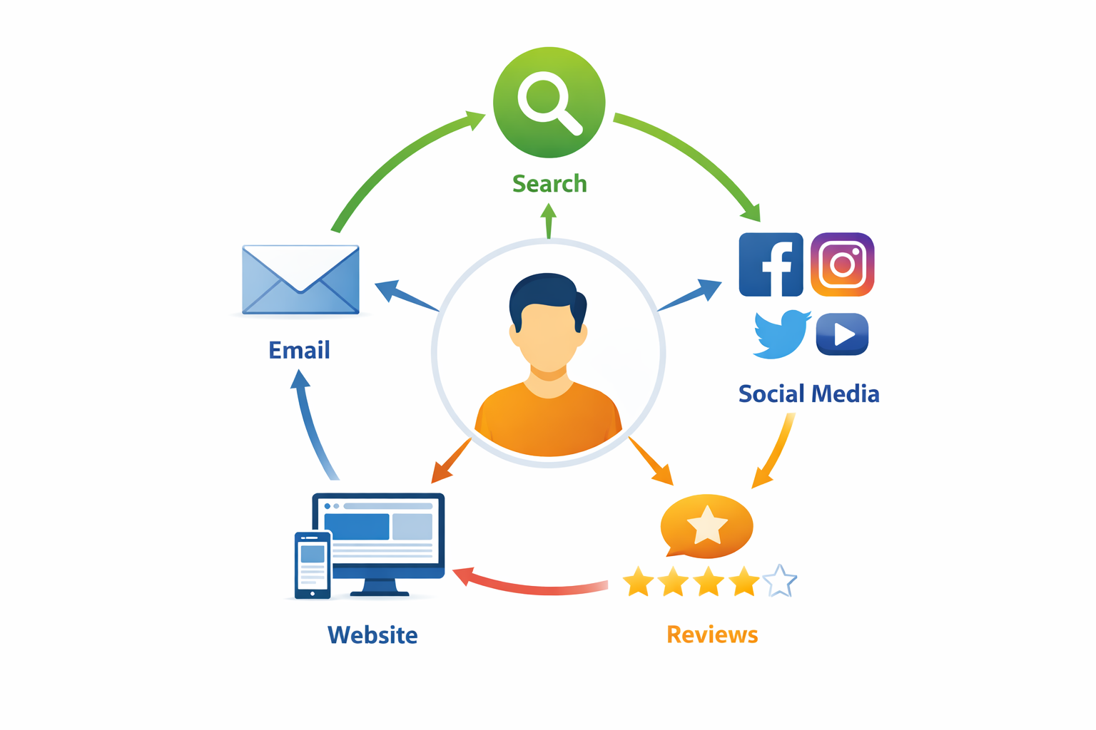 The buying process has fundamentally changed. Before the internet, customers discovered businesses through limited channels: driving by, word of mouth, Yellow Pages, local advertising. Your geographic location and advertising budget determined who found you.